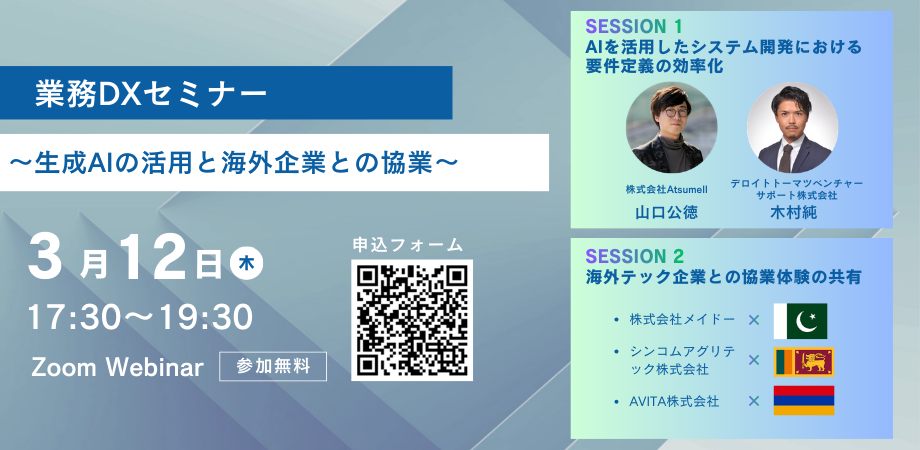 JICA(国際協力機構)が主催し、デロイト トーマツ ベンチャーサポートが運営を支援する「JICA 業務DXセミナー 〜生成AIの活用と海外企業との協業機会〜」が2026年3月12日に開催されます。 セミナーの背景と目的 […]